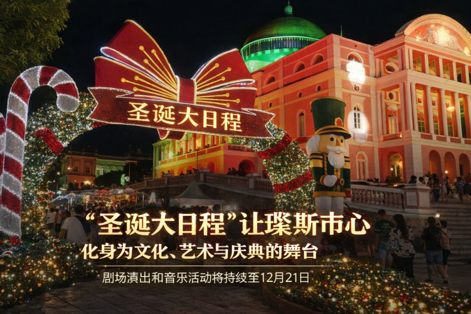 圣诞的氛围已全面笼罩玛瑙斯,并将贯穿整个十二月,使市中心焕发出前所未有的活力。亚马逊州政府正式公布了“圣诞大日程”(Agendão do Natal),这是一项内容丰富、完全免费且面向全民的文化活动计划,涵盖戏剧演出、音乐表演、舞蹈演绎、艺术展览以及传统的圣诞巡游,为城市各大文化空间注入艺术魅力与节日魔力。